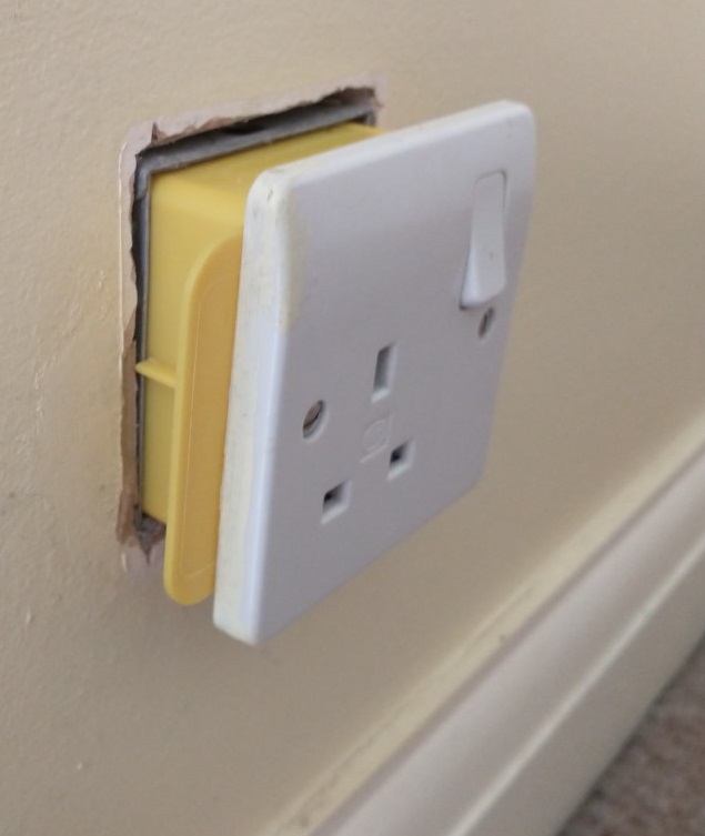 The ‘Lady of the Manor’ persuaded me to redecorate one of our bedrooms recently. The wall concerned had a couple of surface-mounted sockets in the plaster, so I took the opportunity to try out a new bit of electrical installation kit called Sockitz:
